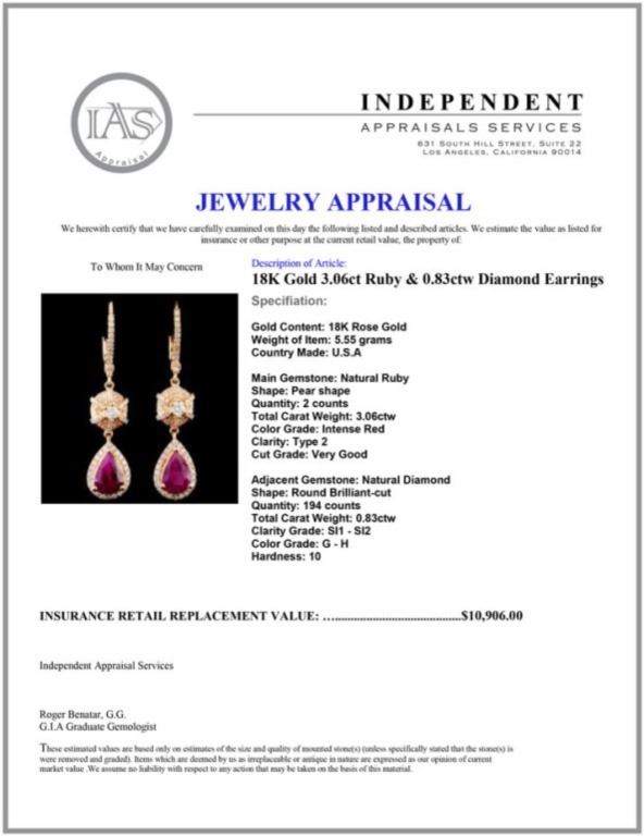 Regarding Appraised Jewelry and Loose Stones - Auctionfarm sends them out to a third party for Retail Replacement Value Appraisals, which are the most common. These types of evaluations are written for insurance needs. This would be the cost to replace the jewelry with an item of equal quality and kind, considered to be the current market price or the replacement value. This type of appraisal is done to protect you in the event of damage or loss of a valuable item. Our appraisals are conducted by independent 3rd Party appraisal firms that utilizes Certified GIA Gemologist. Appraisals should be used for verification of gemstone and/or metal weight, size, and grade only, not actual value. Appraisal value should be considered for insurance purposes only, not actual value, as price varies greatly from retail locations thru out the world. Items should not be purchased with the expectation to resell for appraisal price, or for profit.