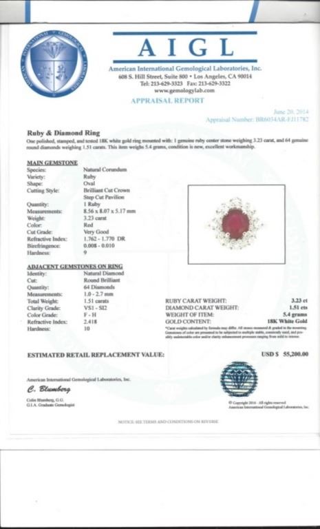 Regarding Appraised Jewelry and Loose Stones - Auctionfarm sends them out to a third party for Retail Replacement Value Appraisals, which are the most common. These types of evaluations are written for insurance needs. This would be the cost to replace the jewelry with an item of equal quality and kind, considered to be the current market price or the replacement value. This type of appraisal is done to protect you in the event of damage or loss of a valuable item. Our appraisals are conducted by independent 3rd Party appraisal firms that utilizes Certified GIA Gemologist. Appraisals should be used for verification of gemstone and/or metal weight, size, and grade only, not actual value. Appraisal value should be considered for insurance purposes only, not actual value, as price varies greatly from retail locations thru out the world. Items should not be purchased with the expectation to resell for appraisal price, or for profit.