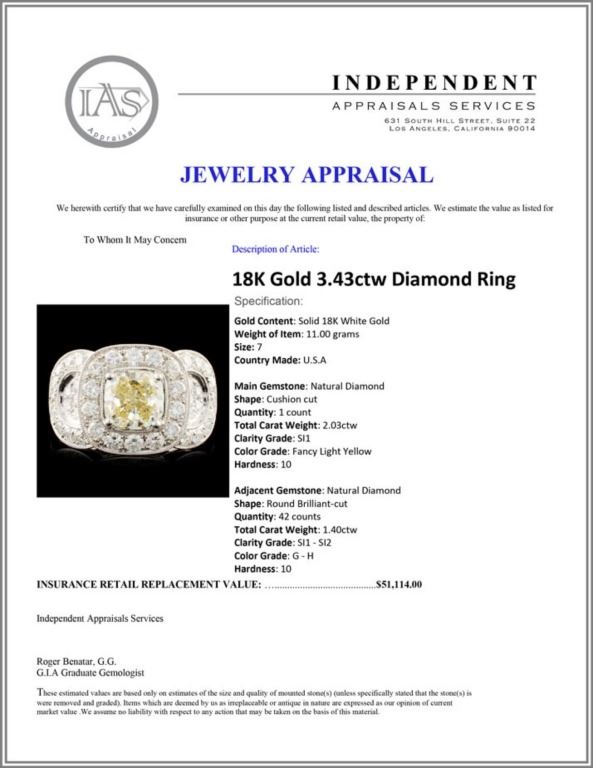 Regarding Appraised Jewelry and Loose Stones - Auctionfarm sends them out to a third party for Retail Replacement Value Appraisals, which are the most common. These types of evaluations are written for insurance needs. This would be the cost to replace the jewelry with an item of equal quality and kind, considered to be the current market price or the replacement value. This type of appraisal is done to protect you in the event of damage or loss of a valuable item. Our appraisals are conducted by independent 3rd Party appraisal firms that utilizes Certified GIA Gemologist. Appraisals should be used for verification of gemstone and/or metal weight, size, and grade only, not actual value. Appraisal value should be considered for insurance purposes only, not actual value, as price varies greatly from retail locations thru out the world. Items should not be purchased with the expectation to resell for appraisal price, or for profit.