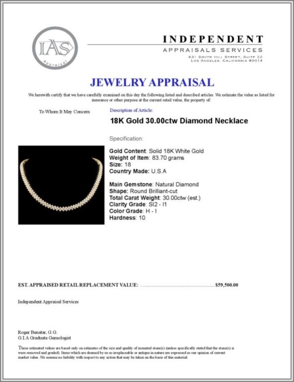 Regarding Appraised Jewelry and Loose Stones - Auctionfarm sends them out to a third party for Retail Replacement Value Appraisals, which are the most common. These types of evaluations are written for insurance needs. This would be the cost to replace the jewelry with an item of equal quality and kind, considered to be the current market price or the replacement value. This type of appraisal is done to protect you in the event of damage or loss of a valuable item. Our appraisals are conducted by independent 3rd Party appraisal firms that utilizes Certified GIA Gemologist. Appraisals should be used for verification of gemstone and/or metal weight, size, and grade only, not actual value. Appraisal value should be considered for insurance purposes only, not actual value, as price varies greatly from retail locations thru out the world. Items should not be purchased with the expectation to resell for appraisal price, or for profit.