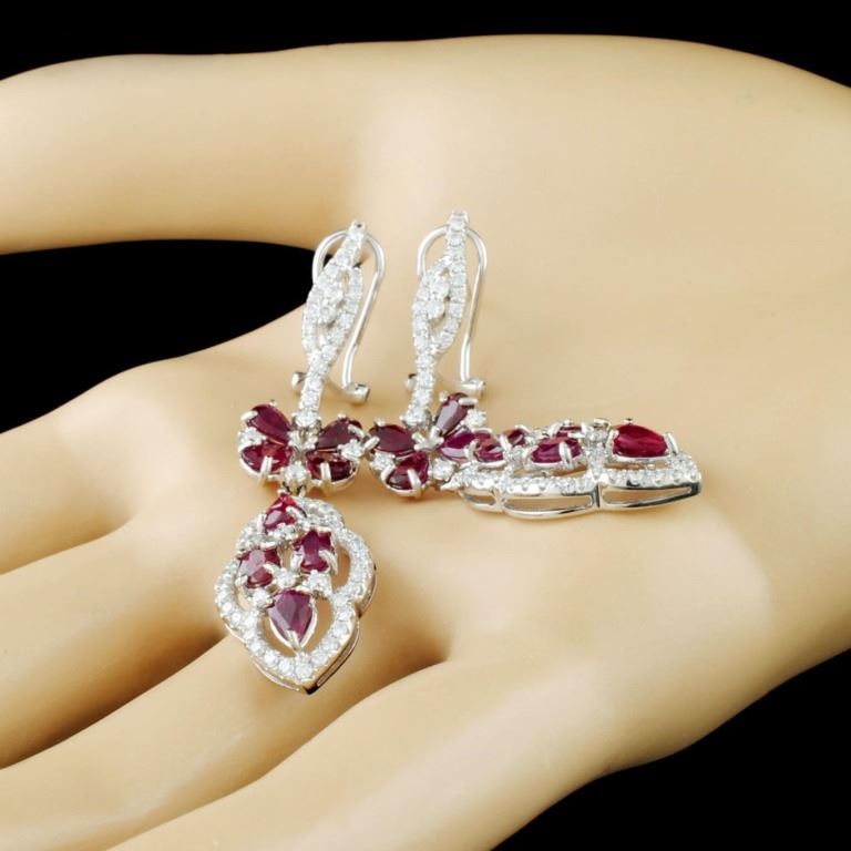 18K Gold 4.15ct Ruby & 1.27ctw Diamond Earrings