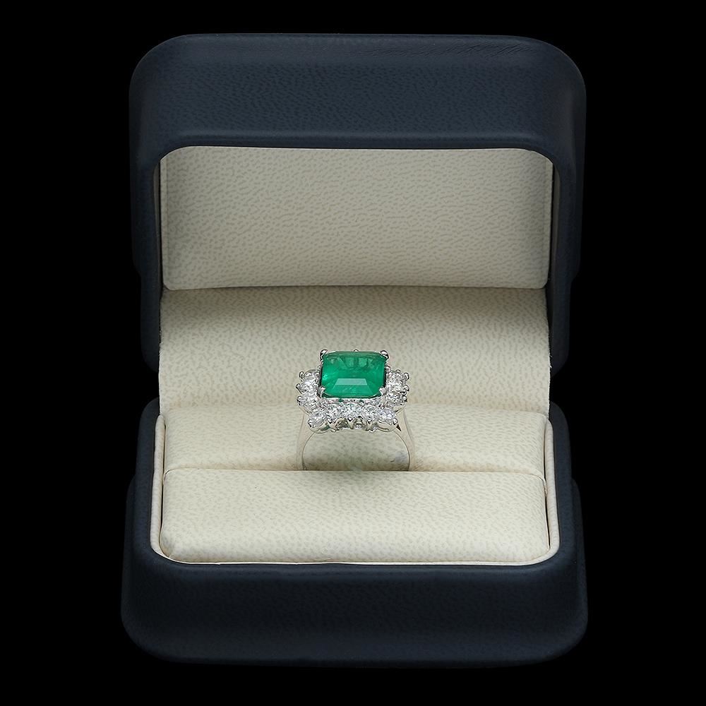 Retail: $21,585.00 ****** 18K Gold 4.18 Emerald 2.00 Diamond Ring ****** Metal: 18K Solid Gold / Total Item Weight: 8.1 grams / Country Made: United States / / Main Stone: Emerald / Color: Green / Carat Total Weight: 4.18 / Treatment: None / Cut: Very Good / / Secondary Stone: Diamond / Carat Total Weight: 2.00 / Treatment: None / Color Grade: F - G / Clarity: SI1 - SI2 / Cut: Round Brilliant /