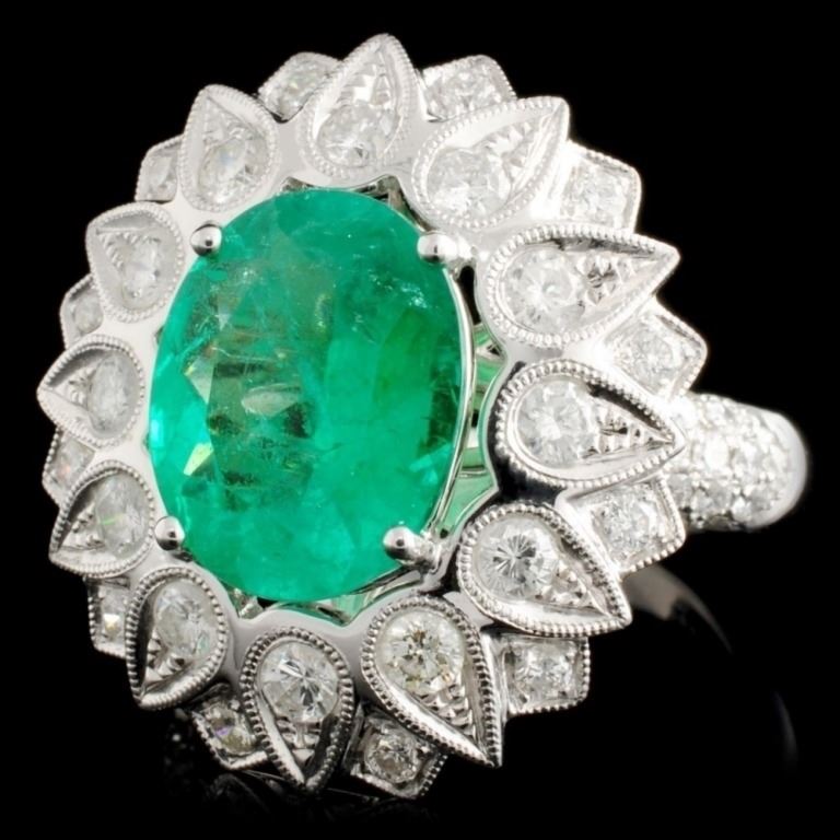 Estimated Retail Replacement Value: $49,020.00Ref: WAG27600Item no.: ARA7021Specification:Gold Content: Solid 18K White Gold Weight of Item: 14.20 gramsSize: 8Country Made: U.S.A Main Gemstone: Natural Emerald Shape: Oval-shapeQuantity: 1 countTotal Carat Weight: 4.23ctColor: GreenClarity: Type 2 Cut Grade: Very Good Adjacent Gemstone: Natural Diamond Shape: Round Brilliant-cut Quantity: 66 countsTotal Carat Weight: 1.93ctwClarity Grade: SI1 - SI3Color Grade: F – HHardness: 10 Great Condition - Shipping notes: We ship 4-10 Business day after the clearance of payment. Tracking numbers are emailed once the package(s) are shipped. Most shipments are sent by FEDEX Priority, UPS Priority, or US PRIORITY MAIL INSURED