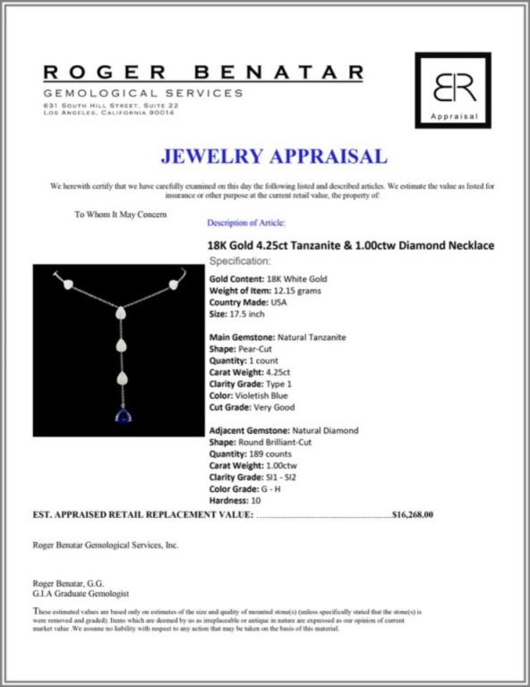 18K Gold 4.25ct Tanzanite & 1.00ctw Diamond Neckla