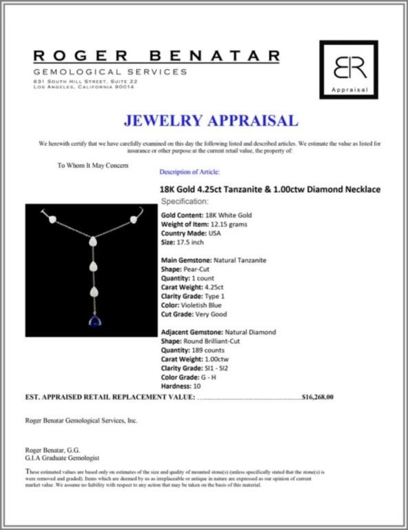 Regarding Appraised Jewelry and Loose Stones - Auctionfarm sends them out to a third party for Retail Replacement Value Appraisals, which are the most common. These types of evaluations are written for insurance needs. This would be the cost to replace the jewelry with an item of equal quality and kind, considered to be the current market price or the replacement value. This type of appraisal is done to protect you in the event of damage or loss of a valuable item. Our appraisals are conducted by independent 3rd Party appraisal firms that utilizes Certified GIA Gemologist. Appraisals should be used for verification of gemstone and/or metal weight, size, and grade only, not actual value. Appraisal value should be considered for insurance purposes only, not actual value, as price varies greatly from retail locations thru out the world. Items should not be purchased with the expectation to resell for appraisal price, or for profit.