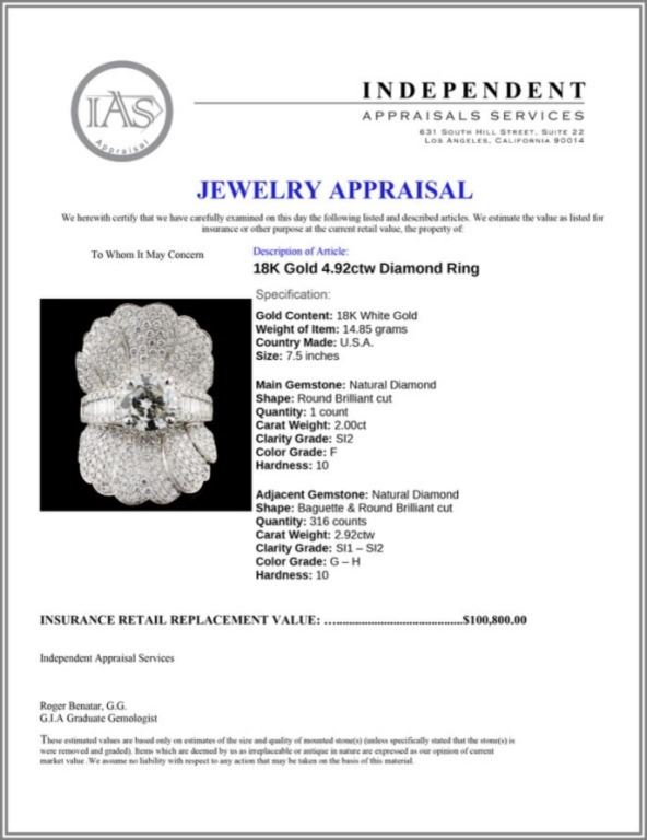 Regarding Appraised Jewelry and Loose Stones - Auctionfarm sends them out to a third party for Retail Replacement Value Appraisals, which are the most common. These types of evaluations are written for insurance needs. This would be the cost to replace the jewelry with an item of equal quality and kind, considered to be the current market price or the replacement value. This type of appraisal is done to protect you in the event of damage or loss of a valuable item. Our appraisals are conducted by independent 3rd Party appraisal firms that utilizes Certified GIA Gemologist. Appraisals should be used for verification of gemstone and/or metal weight, size, and grade only, not actual value. Appraisal value should be considered for insurance purposes only, not actual value, as price varies greatly from retail locations thru out the world. Items should not be purchased with the expectation to resell for appraisal price, or for profit.