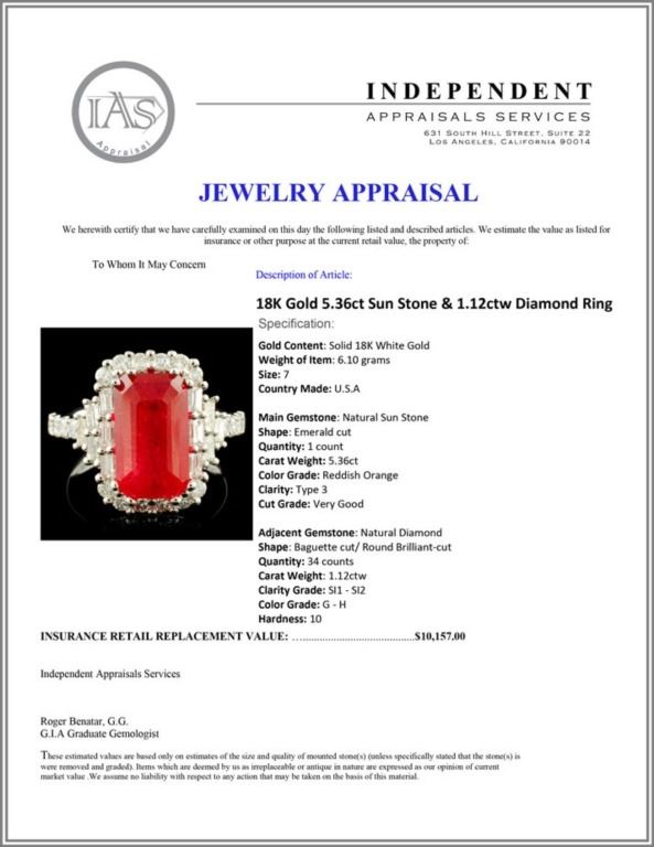 Regarding Appraised Jewelry and Loose Stones - Auctionfarm sends them out to a third party for Retail Replacement Value Appraisals, which are the most common. These types of evaluations are written for insurance needs. This would be the cost to replace the jewelry with an item of equal quality and kind, considered to be the current market price or the replacement value. This type of appraisal is done to protect you in the event of damage or loss of a valuable item. Our appraisals are conducted by independent 3rd Party appraisal firms that utilizes Certified GIA Gemologist. Appraisals should be used for verification of gemstone and/or metal weight, size, and grade only, not actual value. Appraisal value should be considered for insurance purposes only, not actual value, as price varies greatly from retail locations thru out the world. Items should not be purchased with the expectation to resell for appraisal price, or for profit.