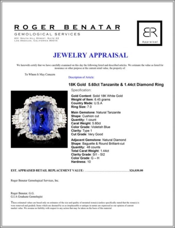 Regarding Appraised Jewelry and Loose Stones - Auctionfarm sends them out to a third party for Retail Replacement Value Appraisals, which are the most common. These types of evaluations are written for insurance needs. This would be the cost to replace the jewelry with an item of equal quality and kind, considered to be the current market price or the replacement value. This type of appraisal is done to protect you in the event of damage or loss of a valuable item. Our appraisals are conducted by independent 3rd Party appraisal firms that utilizes Certified GIA Gemologist. Appraisals should be used for verification of gemstone and/or metal weight, size, and grade only, not actual value. Appraisal value should be considered for insurance purposes only, not actual value, as price varies greatly from retail locations thru out the world. Items should not be purchased with the expectation to resell for appraisal price, or for profit.