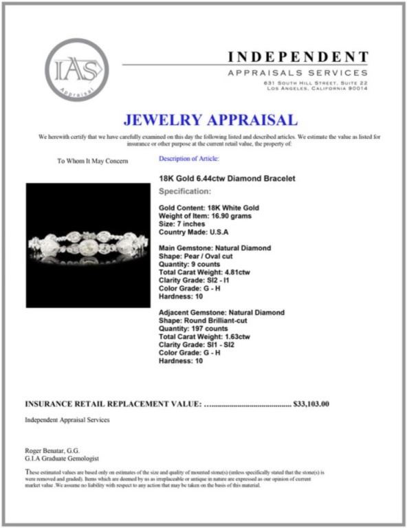Regarding Appraised Jewelry and Loose Stones - Auctionfarm sends them out to a third party for Retail Replacement Value Appraisals, which are the most common. These types of evaluations are written for insurance needs. This would be the cost to replace the jewelry with an item of equal quality and kind, considered to be the current market price or the replacement value. This type of appraisal is done to protect you in the event of damage or loss of a valuable item. Our appraisals are conducted by independent 3rd Party appraisal firms that utilizes Certified GIA Gemologist. Appraisals should be used for verification of gemstone and/or metal weight, size, and grade only, not actual value. Appraisal value should be considered for insurance purposes only, not actual value, as price varies greatly from retail locations thru out the world. Items should not be purchased with the expectation to resell for appraisal price, or for profit.