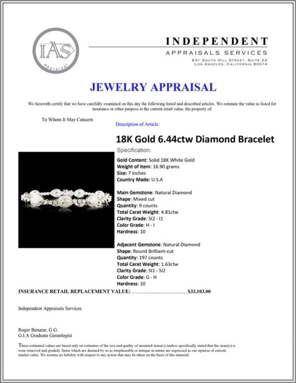 Regarding Appraised Jewelry and Loose Stones - Auctionfarm sends them out to a third party for Retail Replacement Value Appraisals, which are the most common. These types of evaluations are written for insurance needs. This would be the cost to replace the jewelry with an item of equal quality and kind, considered to be the current market price or the replacement value. This type of appraisal is done to protect you in the event of damage or loss of a valuable item. Our appraisals are conducted by independent 3rd Party appraisal firms that utilizes Certified GIA Gemologist. Appraisals should be used for verification of gemstone and/or metal weight, size, and grade only, not actual value. Appraisal value should be considered for insurance purposes only, not actual value, as price varies greatly from retail locations thru out the world. Items should not be purchased with the expectation to resell for appraisal price, or for profit.