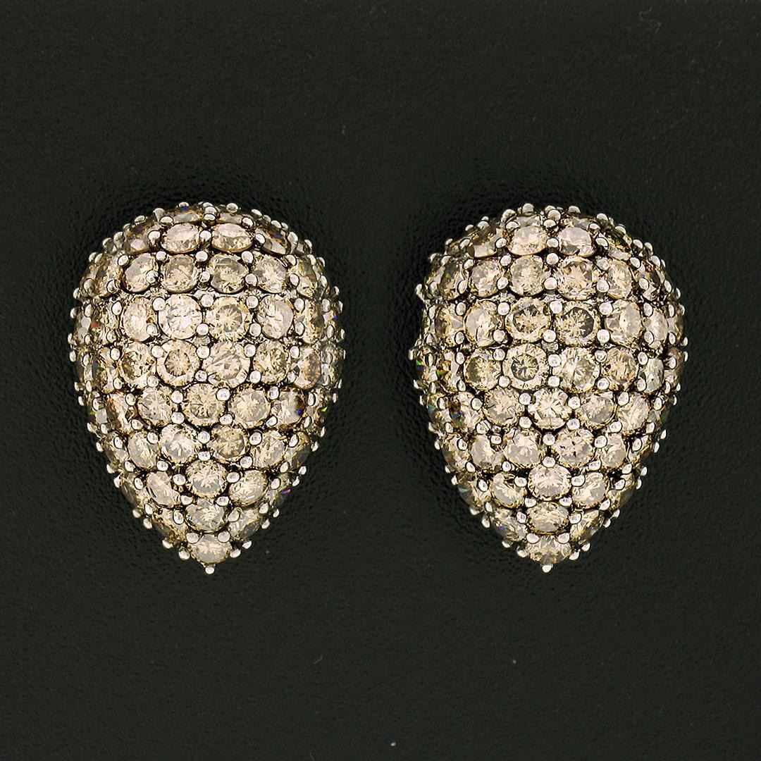A solid 18k white gold tear drop earrings, with 104 round brilliant cut fancy champagen natural diamonds (SI1/SI2 ; 6.50ctw). The earrings measure approximately 20.95x15.65mm and weigh a total of 11.99 grams.