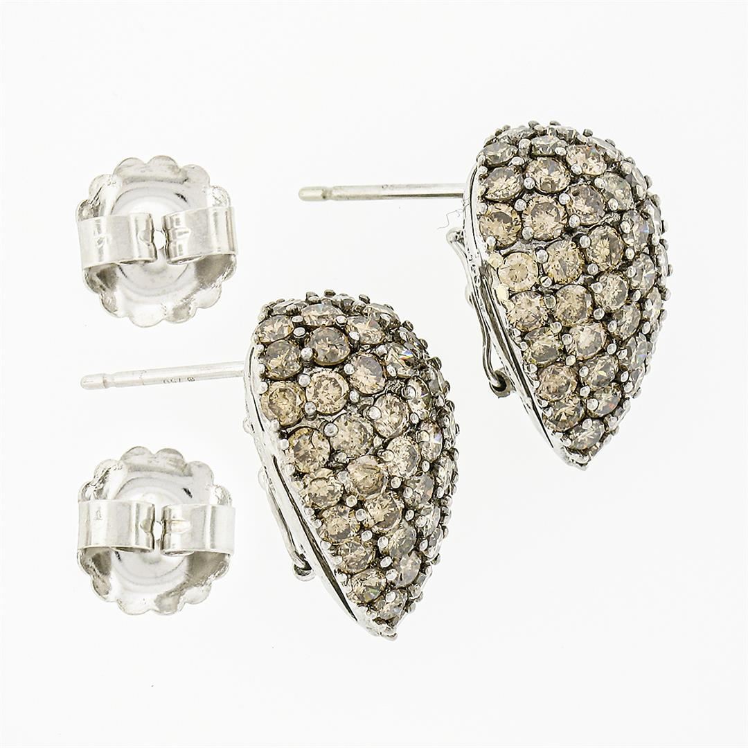 A solid 18k white gold tear drop earrings, with 104 round brilliant cut fancy champagen natural diamonds (SI1/SI2 ; 6.50ctw). The earrings measure approximately 20.95x15.65mm and weigh a total of 11.99 grams.