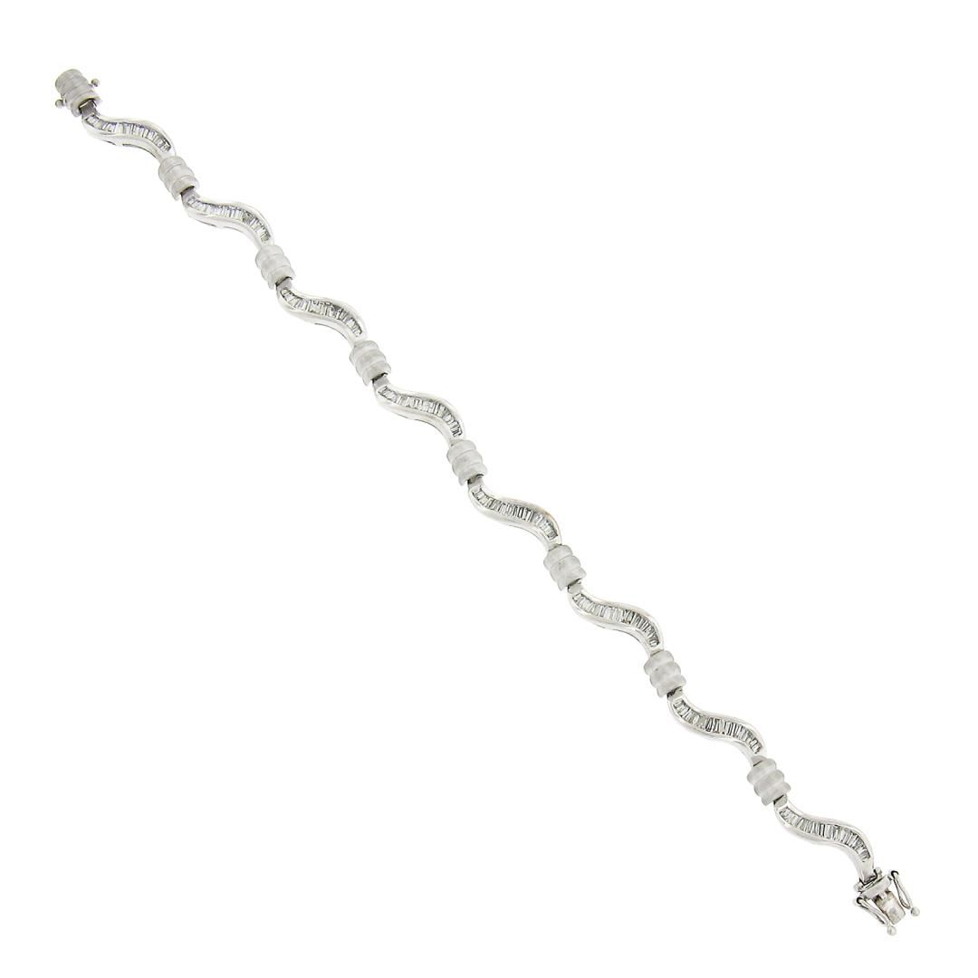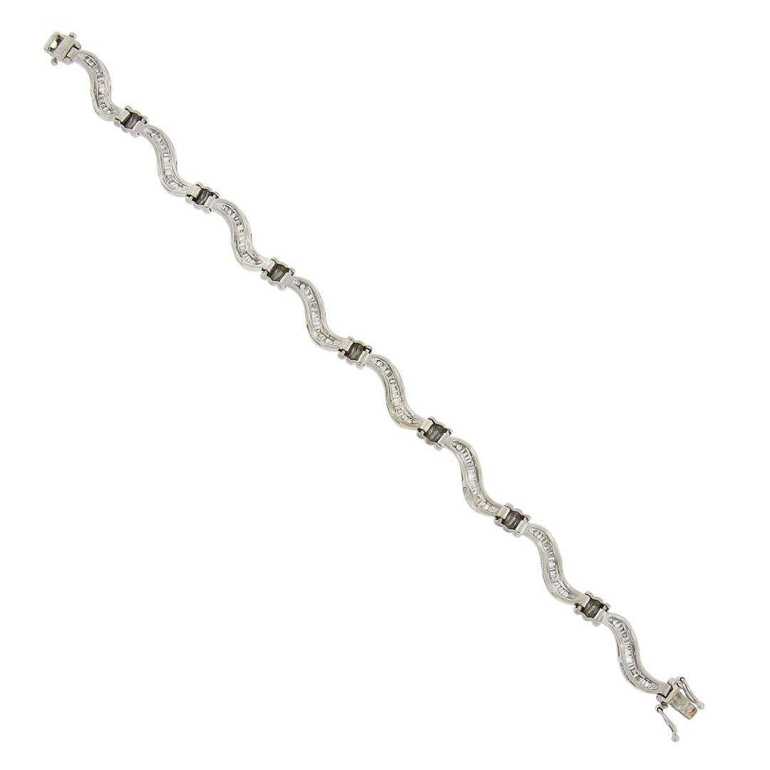 A solid 18k white gold wavy link bracelet, with numerous of baguette cut natural diamonds (G-I - VS2-I1 ; 1.60ctw). It weighs a total of 16.13 grams, measures 6.7mm wide, and measures 7 inches in length.