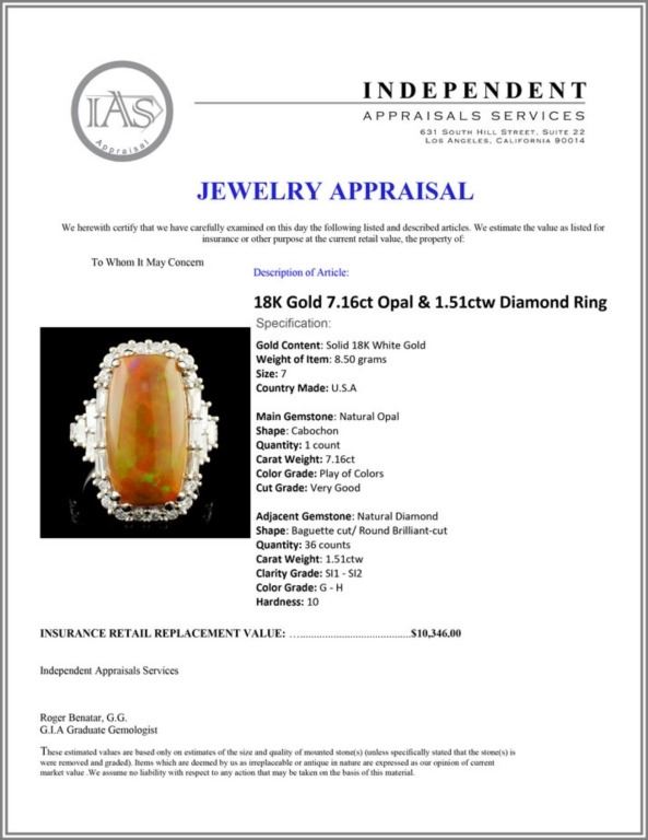 Regarding Appraised Jewelry and Loose Stones - Auctionfarm sends them out to a third party for Retail Replacement Value Appraisals, which are the most common. These types of evaluations are written for insurance needs. This would be the cost to replace the jewelry with an item of equal quality and kind, considered to be the current market price or the replacement value. This type of appraisal is done to protect you in the event of damage or loss of a valuable item. Our appraisals are conducted by independent 3rd Party appraisal firms that utilizes Certified GIA Gemologist. Appraisals should be used for verification of gemstone and/or metal weight, size, and grade only, not actual value. Appraisal value should be considered for insurance purposes only, not actual value, as price varies greatly from retail locations thru out the world. Items should not be purchased with the expectation to resell for appraisal price, or for profit.