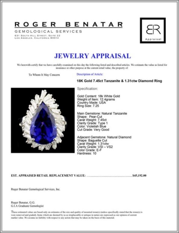 Regarding Appraised Jewelry and Loose Stones - Auctionfarm sends them out to a third party for Retail Replacement Value Appraisals, which are the most common. These types of evaluations are written for insurance needs. This would be the cost to replace the jewelry with an item of equal quality and kind, considered to be the current market price or the replacement value. This type of appraisal is done to protect you in the event of damage or loss of a valuable item. Our appraisals are conducted by independent 3rd Party appraisal firms that utilizes Certified GIA Gemologist. Appraisals should be used for verification of gemstone and/or metal weight, size, and grade only, not actual value. Appraisal value should be considered for insurance purposes only, not actual value, as price varies greatly from retail locations thru out the world. Items should not be purchased with the expectation to resell for appraisal price, or for profit.