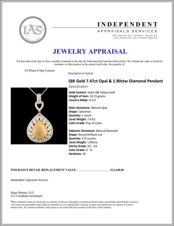 Regarding Appraised Jewelry and Loose Stones - Auctionfarm sends them out to a third party for Retail Replacement Value Appraisals, which are the most common. These types of evaluations are written for insurance needs. This would be the cost to replace the jewelry with an item of equal quality and kind, considered to be the current market price or the replacement value. This type of appraisal is done to protect you in the event of damage or loss of a valuable item. Our appraisals are conducted by independent 3rd Party appraisal firms that utilizes Certified GIA Gemologist. Appraisals should be used for verification of gemstone and/or metal weight, size, and grade only, not actual value. Appraisal value should be considered for insurance purposes only, not actual value, as price varies greatly from retail locations thru out the world. Items should not be purchased with the expectation to resell for appraisal price, or for profit.