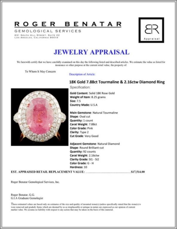 Regarding Appraised Jewelry and Loose Stones - Auctionfarm sends them out to a third party for Retail Replacement Value Appraisals, which are the most common. These types of evaluations are written for insurance needs. This would be the cost to replace the jewelry with an item of equal quality and kind, considered to be the current market price or the replacement value. This type of appraisal is done to protect you in the event of damage or loss of a valuable item. Our appraisals are conducted by independent 3rd Party appraisal firms that utilizes Certified GIA Gemologist. Appraisals should be used for verification of gemstone and/or metal weight, size, and grade only, not actual value. Appraisal value should be considered for insurance purposes only, not actual value, as price varies greatly from retail locations thru out the world. Items should not be purchased with the expectation to resell for appraisal price, or for profit.
