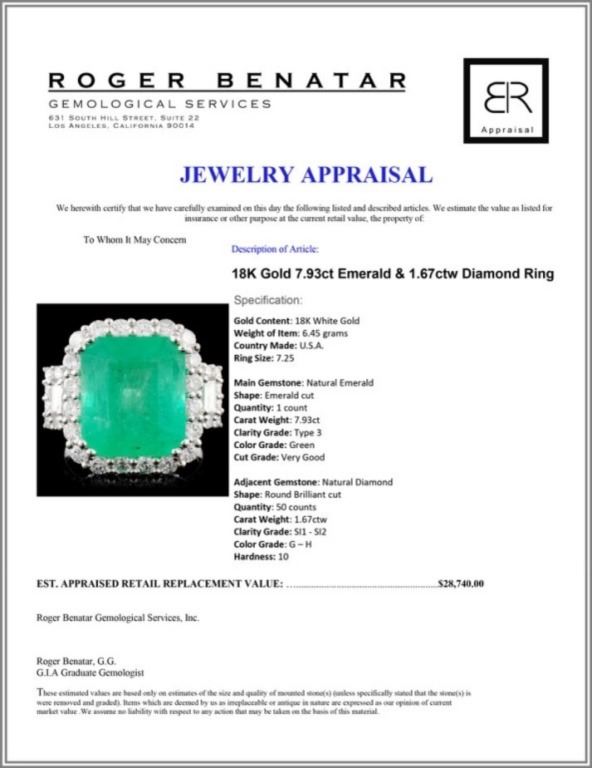 Regarding Appraised Jewelry and Loose Stones - Auctionfarm sends them out to a third party for Retail Replacement Value Appraisals, which are the most common. These types of evaluations are written for insurance needs. This would be the cost to replace the jewelry with an item of equal quality and kind, considered to be the current market price or the replacement value. This type of appraisal is done to protect you in the event of damage or loss of a valuable item. Our appraisals are conducted by independent 3rd Party appraisal firms that utilizes Certified GIA Gemologist. Appraisals should be used for verification of gemstone and/or metal weight, size, and grade only, not actual value. Appraisal value should be considered for insurance purposes only, not actual value, as price varies greatly from retail locations thru out the world. Items should not be purchased with the expectation to resell for appraisal price, or for profit.