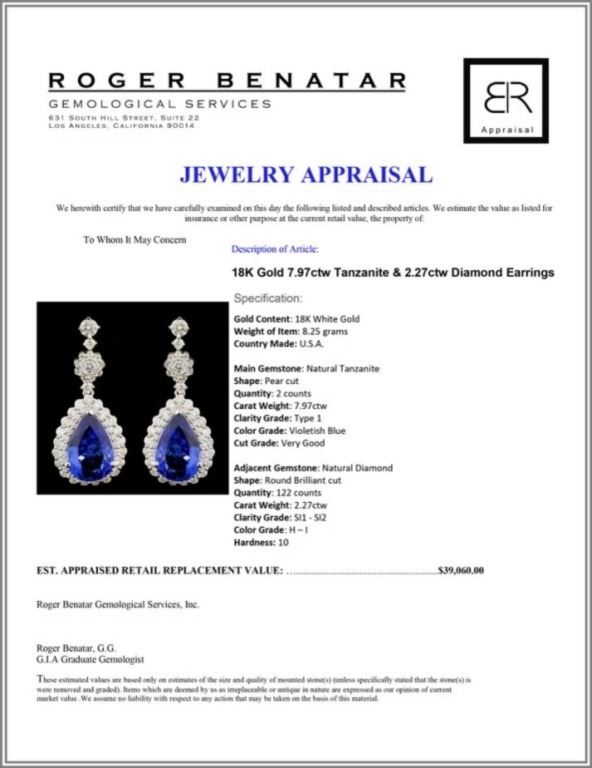 Regarding Appraised Jewelry and Loose Stones - Auctionfarm sends them out to a third party for Retail Replacement Value Appraisals, which are the most common. These types of evaluations are written for insurance needs. This would be the cost to replace the jewelry with an item of equal quality and kind, considered to be the current market price or the replacement value. This type of appraisal is done to protect you in the event of damage or loss of a valuable item. Our appraisals are conducted by independent 3rd Party appraisal firms that utilizes Certified GIA Gemologist. Appraisals should be used for verification of gemstone and/or metal weight, size, and grade only, not actual value. Appraisal value should be considered for insurance purposes only, not actual value, as price varies greatly from retail locations thru out the world. Items should not be purchased with the expectation to resell for appraisal price, or for profit.