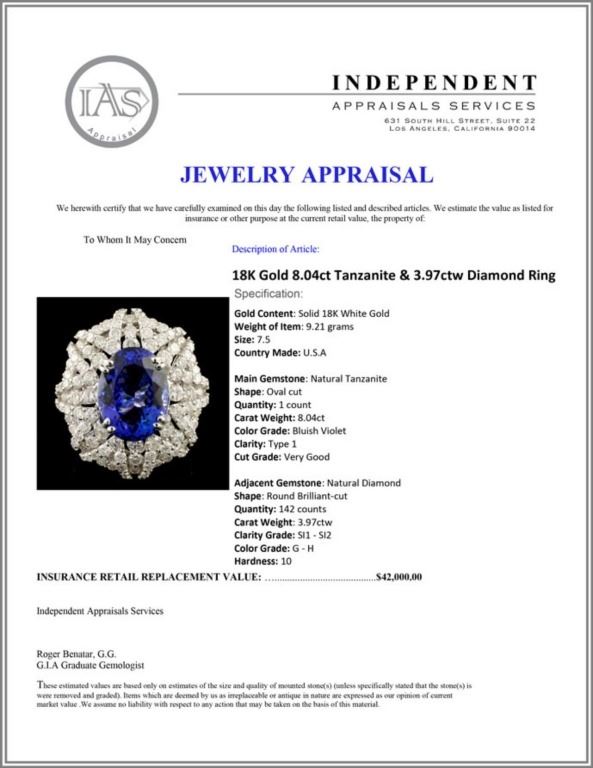 Regarding Appraised Jewelry and Loose Stones - Auctionfarm sends them out to a third party for Retail Replacement Value Appraisals, which are the most common. These types of evaluations are written for insurance needs. This would be the cost to replace the jewelry with an item of equal quality and kind, considered to be the current market price or the replacement value. This type of appraisal is done to protect you in the event of damage or loss of a valuable item. Our appraisals are conducted by independent 3rd Party appraisal firms that utilizes Certified GIA Gemologist. Appraisals should be used for verification of gemstone and/or metal weight, size, and grade only, not actual value. Appraisal value should be considered for insurance purposes only, not actual value, as price varies greatly from retail locations thru out the world. Items should not be purchased with the expectation to resell for appraisal price, or for profit.