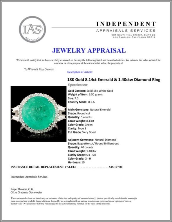 Regarding Appraised Jewelry and Loose Stones - Auctionfarm sends them out to a third party for Retail Replacement Value Appraisals, which are the most common. These types of evaluations are written for insurance needs. This would be the cost to replace the jewelry with an item of equal quality and kind, considered to be the current market price or the replacement value. This type of appraisal is done to protect you in the event of damage or loss of a valuable item. Our appraisals are conducted by independent 3rd Party appraisal firms that utilizes Certified GIA Gemologist. Appraisals should be used for verification of gemstone and/or metal weight, size, and grade only, not actual value. Appraisal value should be considered for insurance purposes only, not actual value, as price varies greatly from retail locations thru out the world. Items should not be purchased with the expectation to resell for appraisal price, or for profit.