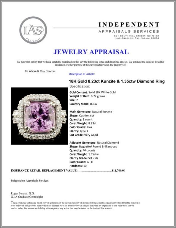 Regarding Appraised Jewelry and Loose Stones - Auctionfarm sends them out to a third party for Retail Replacement Value Appraisals, which are the most common. These types of evaluations are written for insurance needs. This would be the cost to replace the jewelry with an item of equal quality and kind, considered to be the current market price or the replacement value. This type of appraisal is done to protect you in the event of damage or loss of a valuable item. Our appraisals are conducted by independent 3rd Party appraisal firms that utilizes Certified GIA Gemologist. Appraisals should be used for verification of gemstone and/or metal weight, size, and grade only, not actual value. Appraisal value should be considered for insurance purposes only, not actual value, as price varies greatly from retail locations thru out the world. Items should not be purchased with the expectation to resell for appraisal price, or for profit.