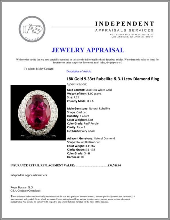 Regarding Appraised Jewelry and Loose Stones - Auctionfarm sends them out to a third party for Retail Replacement Value Appraisals, which are the most common. These types of evaluations are written for insurance needs. This would be the cost to replace the jewelry with an item of equal quality and kind, considered to be the current market price or the replacement value. This type of appraisal is done to protect you in the event of damage or loss of a valuable item. Our appraisals are conducted by independent 3rd Party appraisal firms that utilizes Certified GIA Gemologist. Appraisals should be used for verification of gemstone and/or metal weight, size, and grade only, not actual value. Appraisal value should be considered for insurance purposes only, not actual value, as price varies greatly from retail locations thru out the world. Items should not be purchased with the expectation to resell for appraisal price, or for profit.