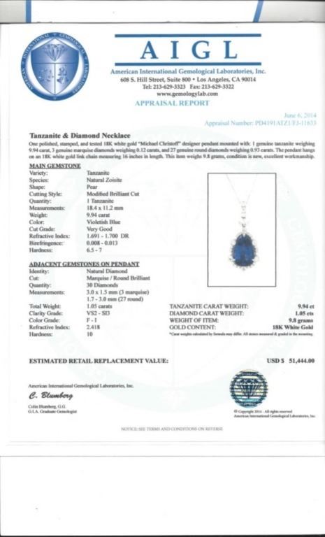 Regarding Appraised Jewelry and Loose Stones - Auctionfarm sends them out to a third party for Retail Replacement Value Appraisals, which are the most common. These types of evaluations are written for insurance needs. This would be the cost to replace the jewelry with an item of equal quality and kind, considered to be the current market price or the replacement value. This type of appraisal is done to protect you in the event of damage or loss of a valuable item. Our appraisals are conducted by independent 3rd Party appraisal firms that utilizes Certified GIA Gemologist. Appraisals should be used for verification of gemstone and/or metal weight, size, and grade only, not actual value. Appraisal value should be considered for insurance purposes only, not actual value, as price varies greatly from retail locations thru out the world. Items should not be purchased with the expectation to resell for appraisal price, or for profit.