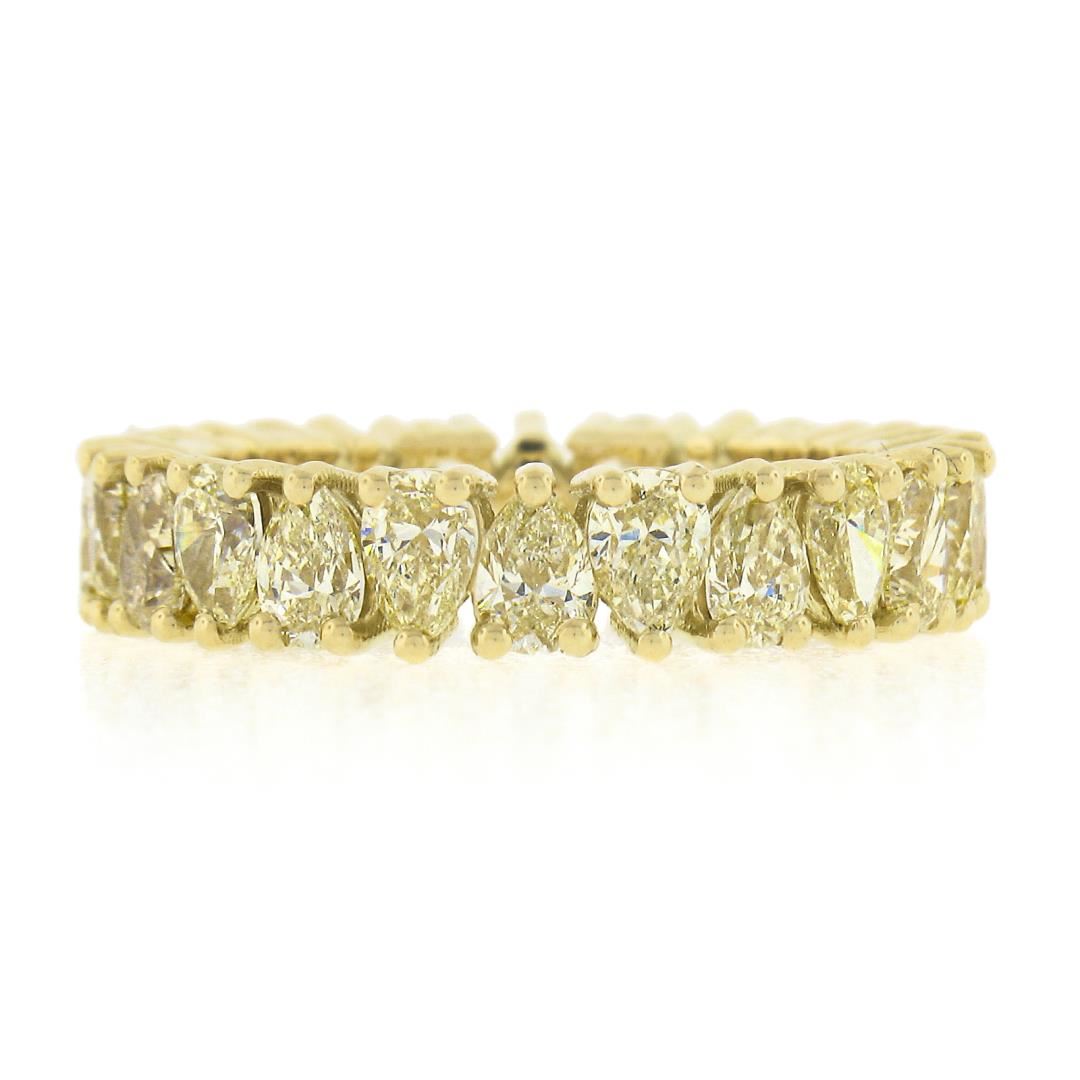 A new solid 18k yellow gold eternity band ring, featuring 24 pear cut natural fancy yellow diamonds (VS1/VS2 few SI1 ; 3.50ctw). The ring is size 7.0, weighs a total of 4.33 grams, and measures 4.70mm wide.