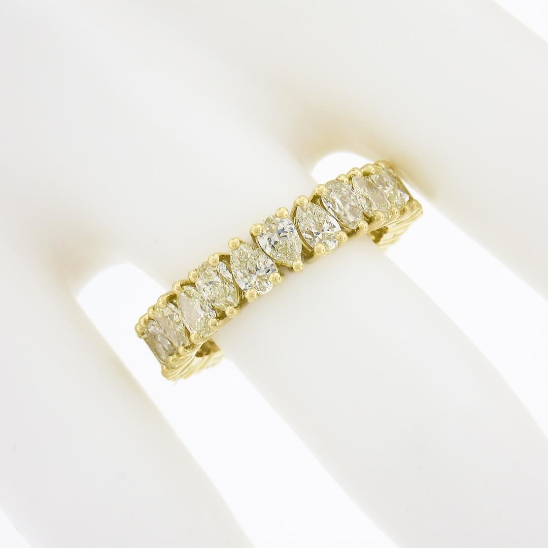 A new solid 18k yellow gold eternity band ring, featuring 24 pear cut natural fancy yellow diamonds (VS1/VS2 few SI1 ; 3.50ctw). The ring is size 7.0, weighs a total of 4.33 grams, and measures 4.70mm wide.