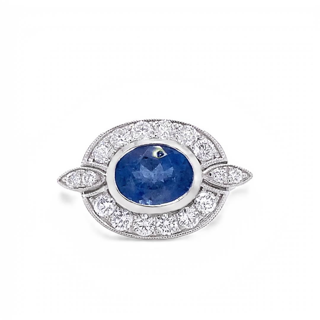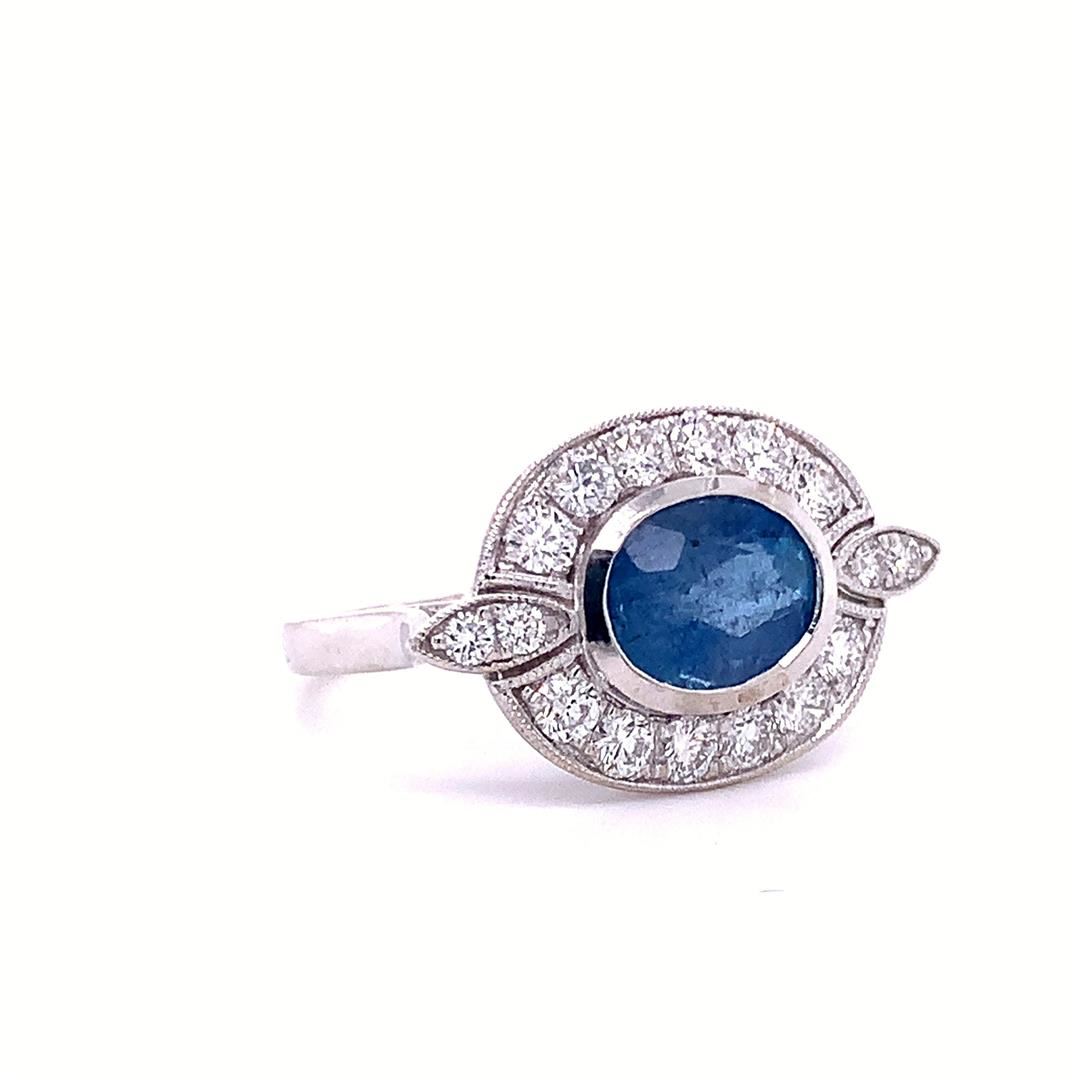 18K Gold Aquamarine and Diamond Ring. Please see Photos and Description for all available information. This uniquely designed aquamarine and diamond ring features a 2.00ct center stone in an 18K white gold setting. The sparkling aquamarine is surrounded by a halo of VS diamonds; creating a breathtakingly beautiful piece of jewelry that is perfect for any occasion.