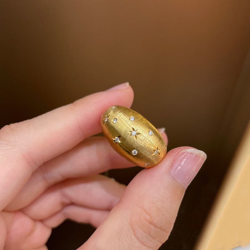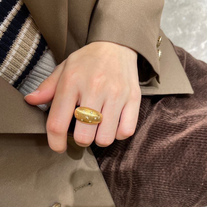 This 18K gold brushed diamond ring features a unique texture on the surface, created with the brushed finish. The ring is adorned with sparkling diamonds arranged in star-like patterns, adding a touch of luxury and elegance. The minimalist design, combined with exquisite details, makes it perfect for various occasions, showcasing the wearer’s noble style and unique taste.Ring size: 6, circumference: 52 mm, diameter: 16.6 mm, total weight: 10.73g.Note: GUILD certificate, comes with a jewelry, gemstone, and precious metal authentication certificate.