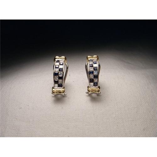 <tr><td>Title:18K Gold Checkerboad Sapphire Diamond Earrings</td></tr>
