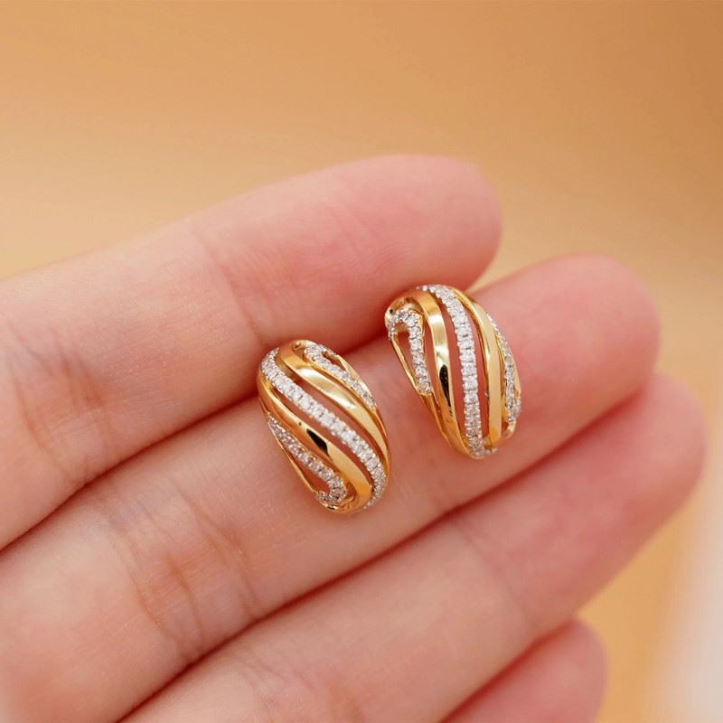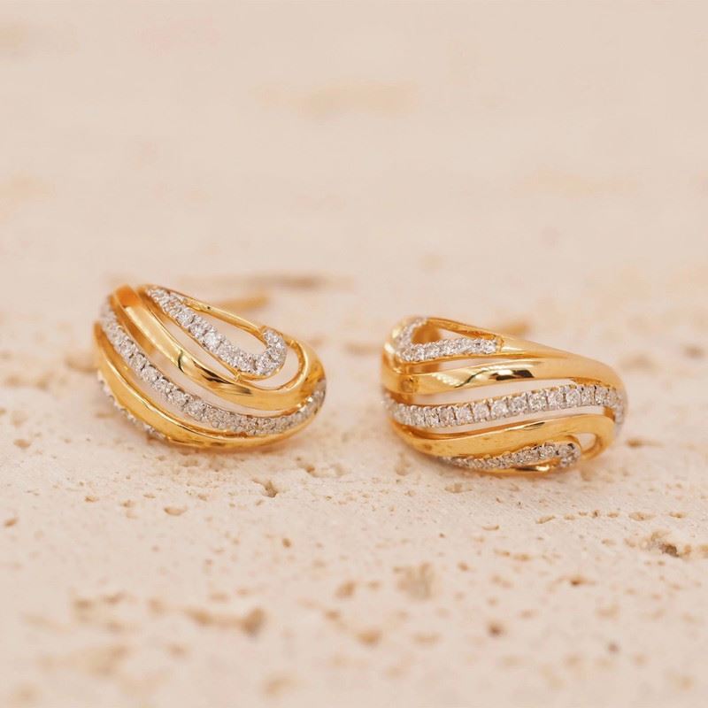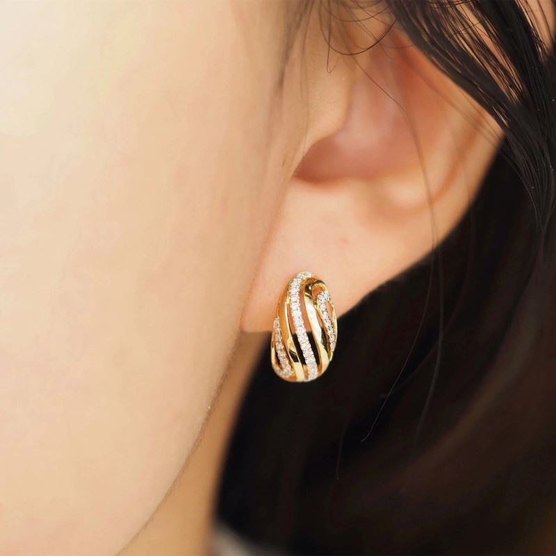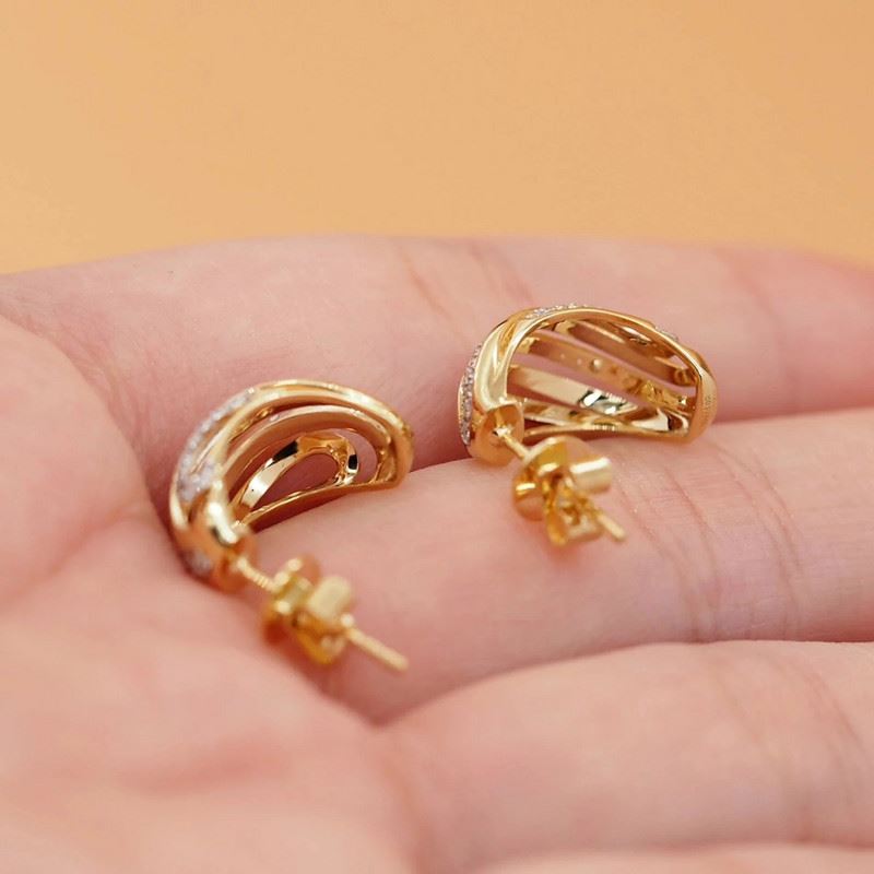 Crafted from 18K gold and sparkling diamonds, these earrings draw inspiration from the natural shape of coffee beans. The elegant curves and interplay between the golden tones and the brilliance of the diamonds create a design that is both simple and sophisticated. Perfect for any occasion, adding a touch of understated luxury.Total weight: 3.1g.Note: GUILD certificate, comes with a jewelry, gemstone, and precious metal authentication certificate.