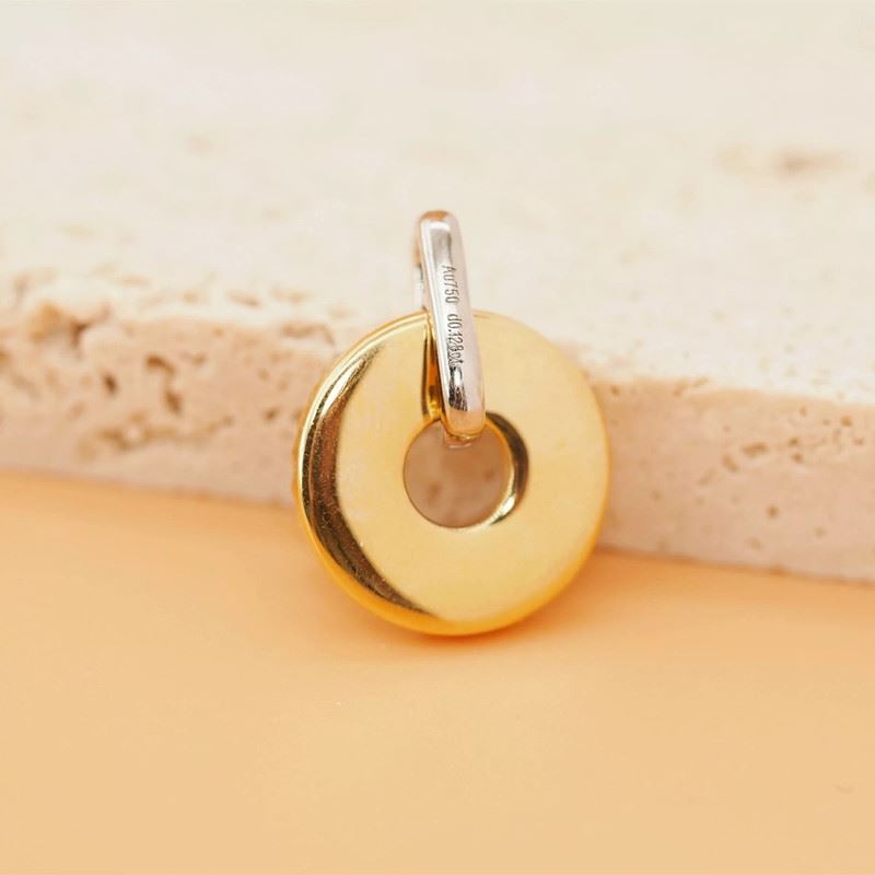 This 18K gold pendant features a circular design with a beaded gold outer ring and a diamond-set inner circle. The motif symbolizes eternity and harmony, radiating understated luxury and refined elegance.Total weight: 5.14g.Note: GUILD certificate, comes with a jewelry, gemstone, and precious metal authentication certificate.