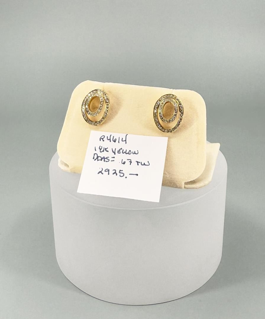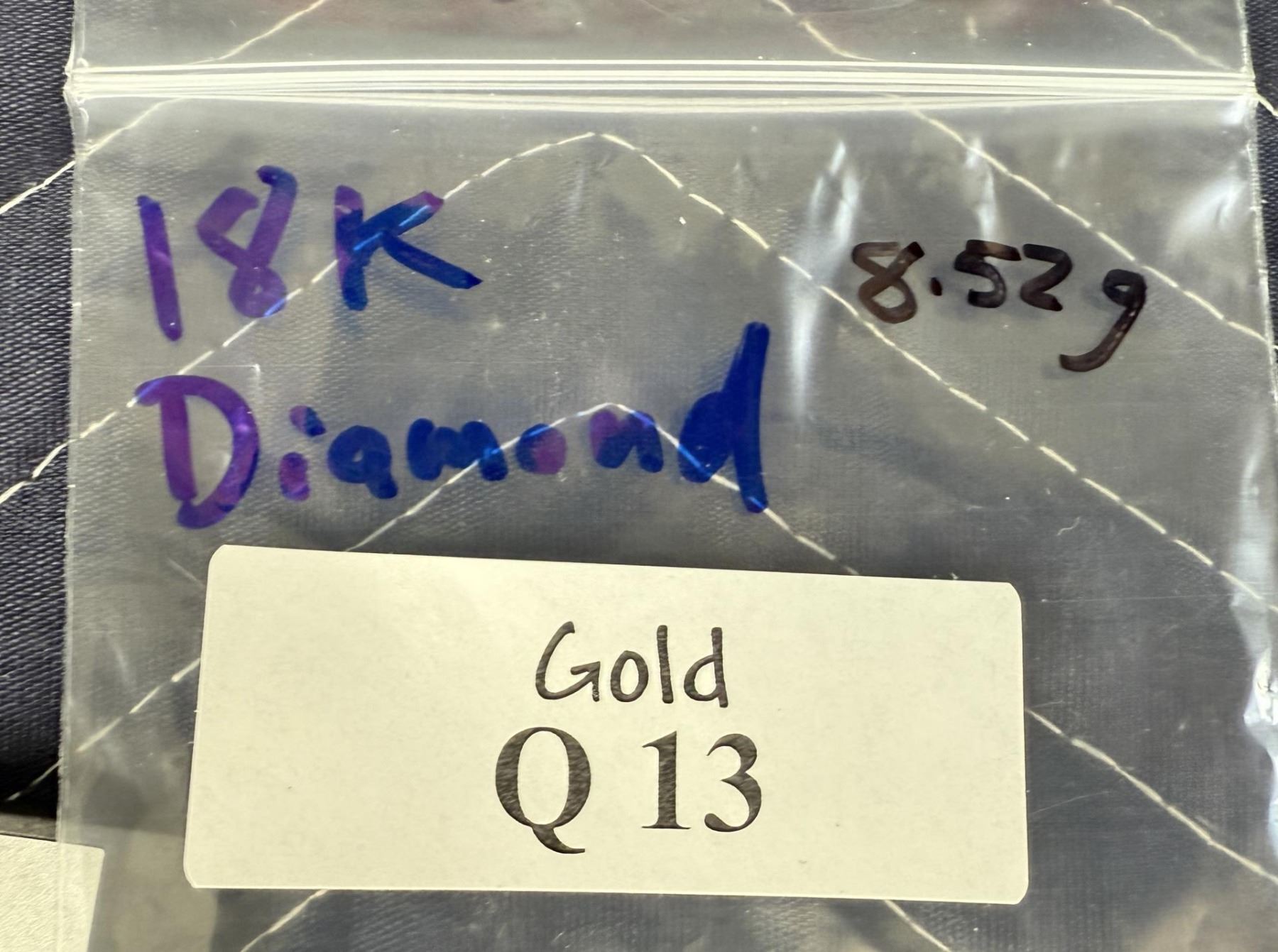 5/8" by 1/2". 8.52 grams. .67ct Total Weight Diamonds. Provenance: Factory new, from the estate of RP Ellis Missoula, Montana.