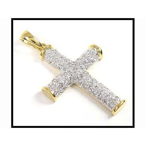 18K gold cross is encrusted with diamonds. 77 stones in all. Measures 34mm (1 5/16") long x 19mm (3/4") wide with bale. Diamonds total over 1/2 carat. Was priced for $800.