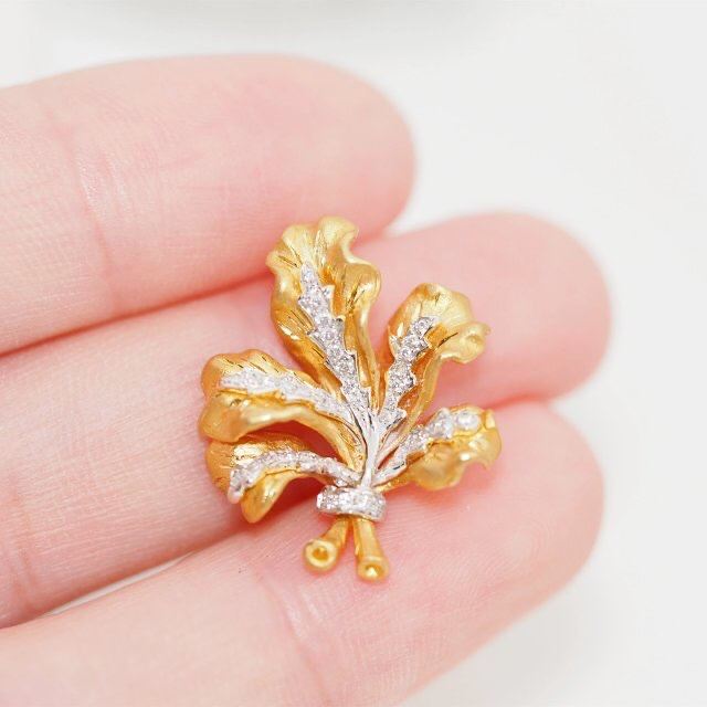 This 18K gold pendant is inspired by a bouquet design, featuring graceful gold petals accented with sparkling diamonds. Its sculpted form combines luxurious brilliance with organic beauty, radiating feminine elegance and timeless charm.Total weight: 4.18g.