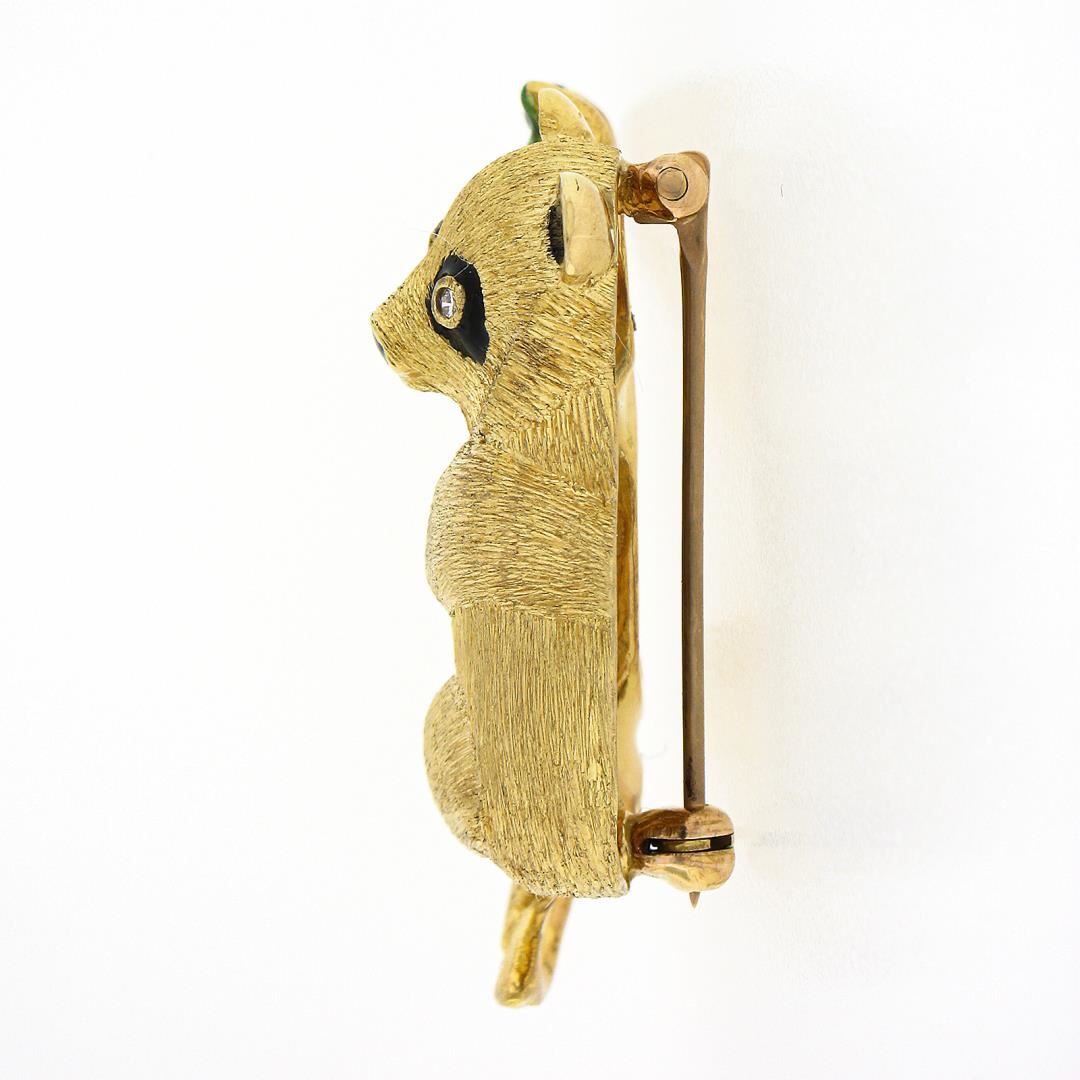 A solid 18k yellow gold and enamel work panda brooch. with 2 round brilliant cut natural diamonds (G - VS2 ; 0.05ct). Measures 35.50x21.70mm and weighs a total of 13.79 grams.