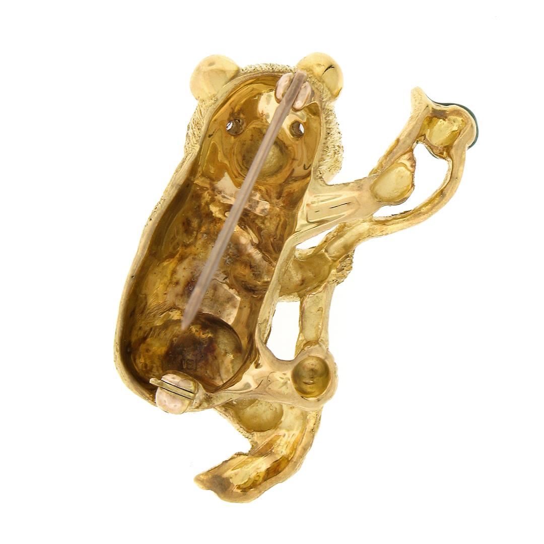 A solid 18k yellow gold and enamel work panda brooch. with 2 round brilliant cut natural diamonds (G - VS2 ; 0.05ct). Measures 35.50x21.70mm and weighs a total of 13.79 grams.