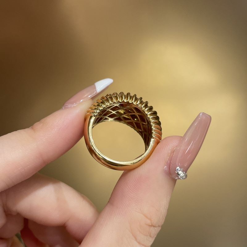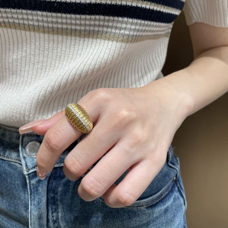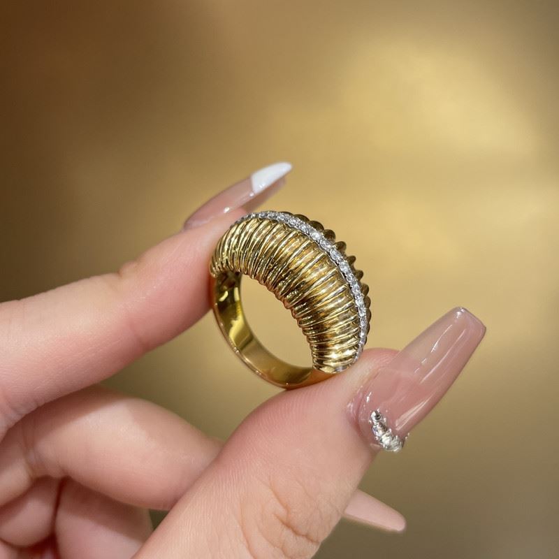 This 18K gold diamond ring features a unique textured design, with delicate metal lines intertwined at the top, creating a dynamic aesthetic. Sparkling diamonds are set along the sides, adding luxury and modern flair. Its minimalist yet creative design makes it the perfect choice for any occasion, ideal for daily wear or special moments.Ring size: 6, circumference: 52 mm, diameter: 16.6 mm, total weight: 10.21g.Note: GUILD certificate, comes with a jewelry, gemstone, and precious metal authentication certificate.