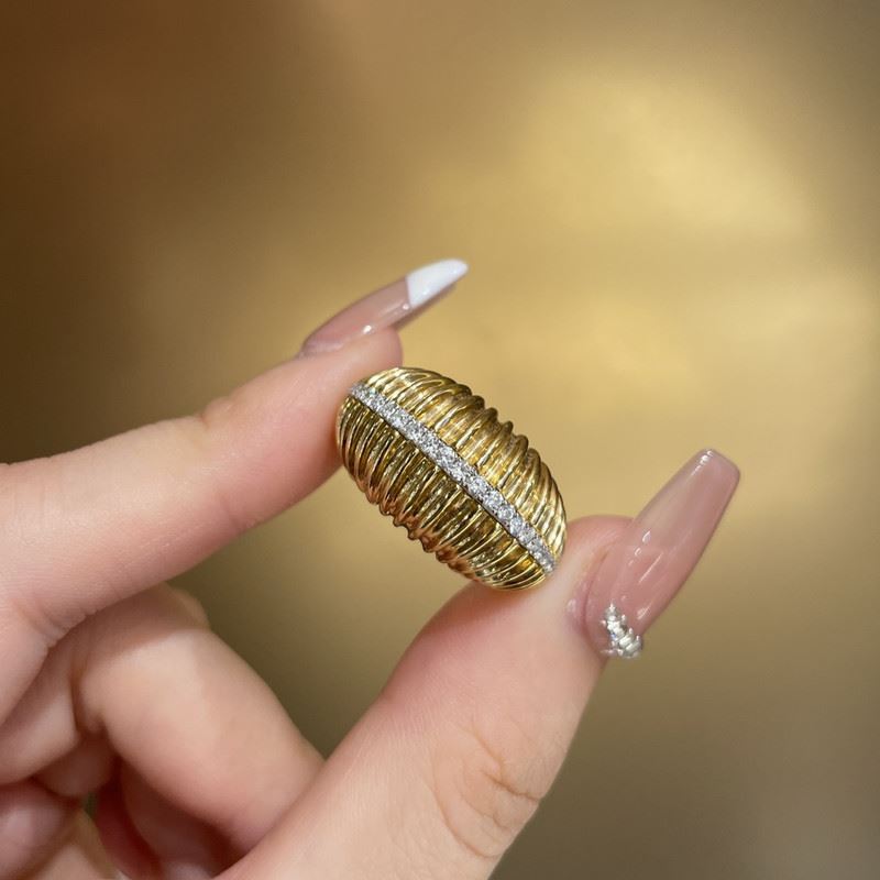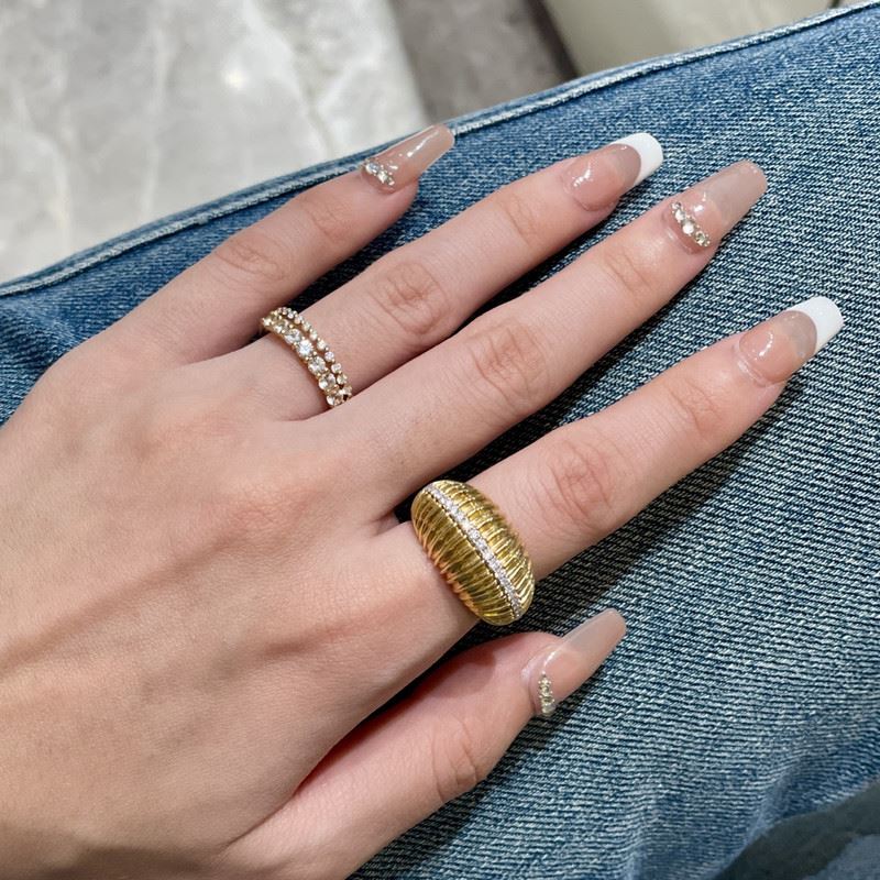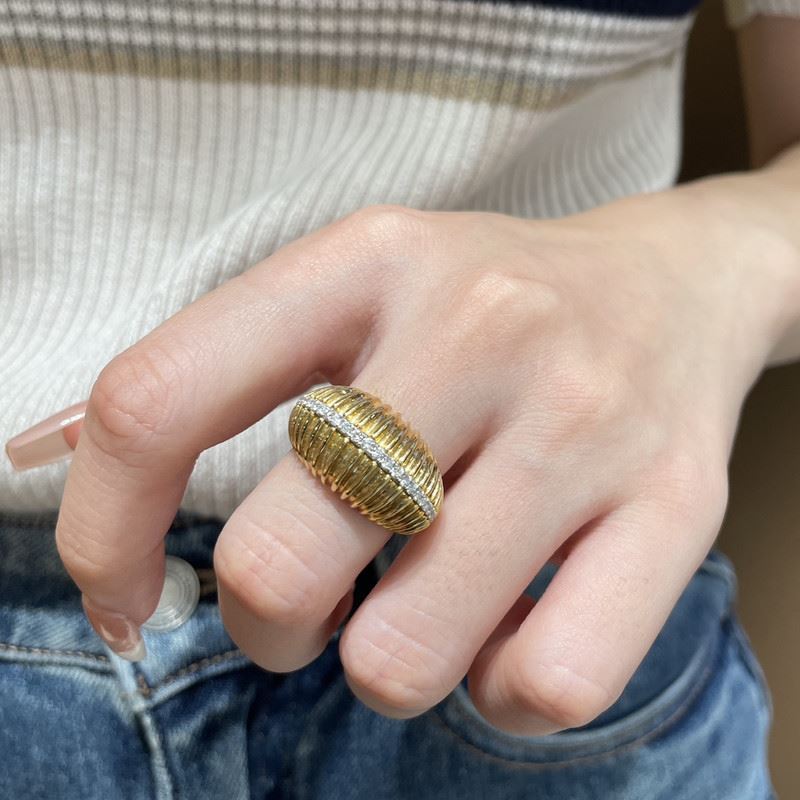 This 18K gold diamond ring features a unique textured design, with delicate metal lines intertwined at the top, creating a dynamic aesthetic. Sparkling diamonds are set along the sides, adding luxury and modern flair. Its minimalist yet creative design makes it the perfect choice for any occasion, ideal for daily wear or special moments.Ring size: 6, circumference: 52 mm, diameter: 16.6 mm, total weight: 10.21g.Note: GUILD certificate, comes with a jewelry, gemstone, and precious metal authentication certificate.