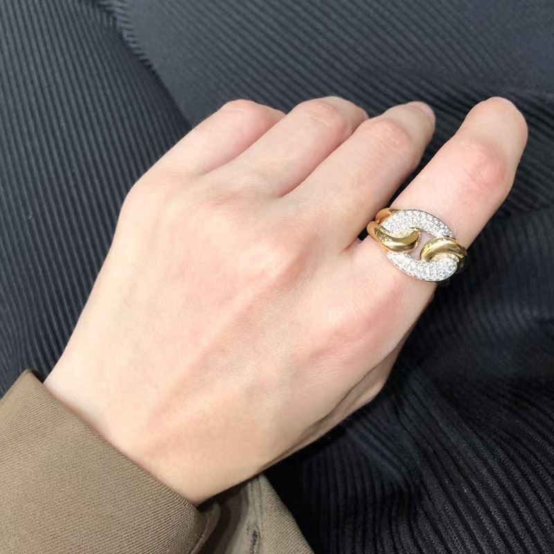 This luxurious 18K gold ring features a bold, intertwined design, accented with sparkling diamonds. The combination of smooth gold curves and radiant diamonds creates a statement piece that exudes sophistication and timeless elegance, perfect for special occasions or as a unique gift. Total weight: 9.4g.Note: GUILD certificate, comes with a jewelry, gemstone, and precious metal authentication certificate.