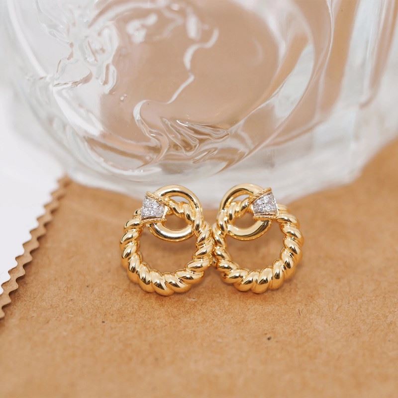 These 18K gold diamond twisted hoop earrings feature a unique design with an intricate twisted shape and dazzling diamonds, striking the perfect balance between simplicity and luxury. The golden luster combined with the sparkle of diamonds makes these earrings eye-catching and versatile for any occasion, showcasing personal taste and elegance.Total weight: 4.7g.Note: GUILD certificate, comes with a jewelry, gemstone, and precious metal authentication certificate.