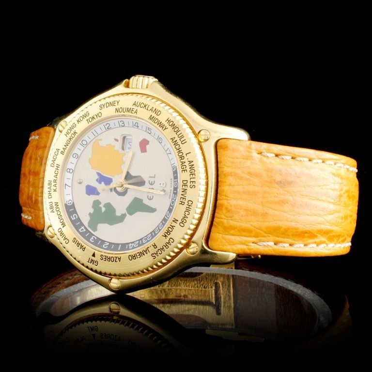 Bracelet Style: Brown Leather Band / Fold Clasp Buckle