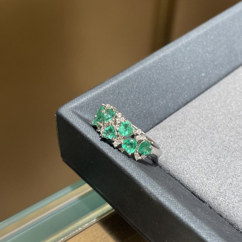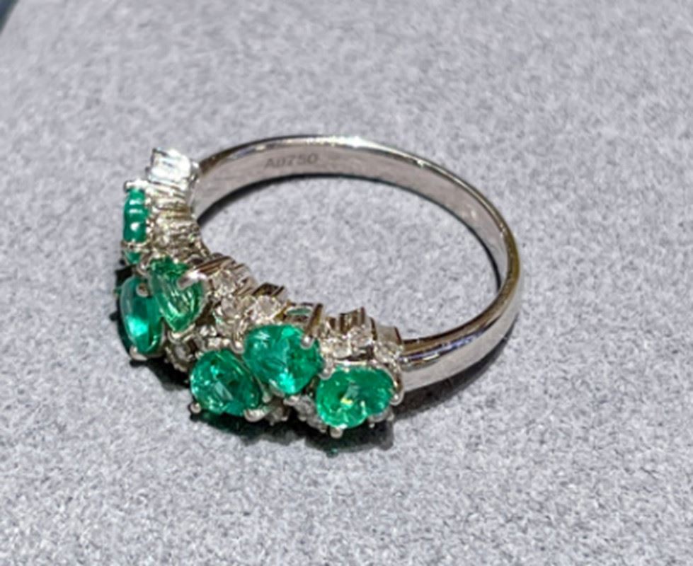 This 18K gold band ring is set with multiple emeralds and diamonds, showcasing vivid color contrast and refined layering. Its simple yet timeless design embodies elegance and sophistication.Ring size: 6, circumference: 52 mm, diameter: 16.6 mm, total weight: 3.78g.Note: GUILD certificate, comes with a jewelry, gemstone, and precious metal authentication certificate.