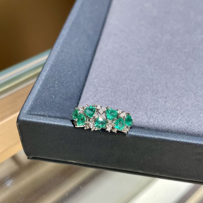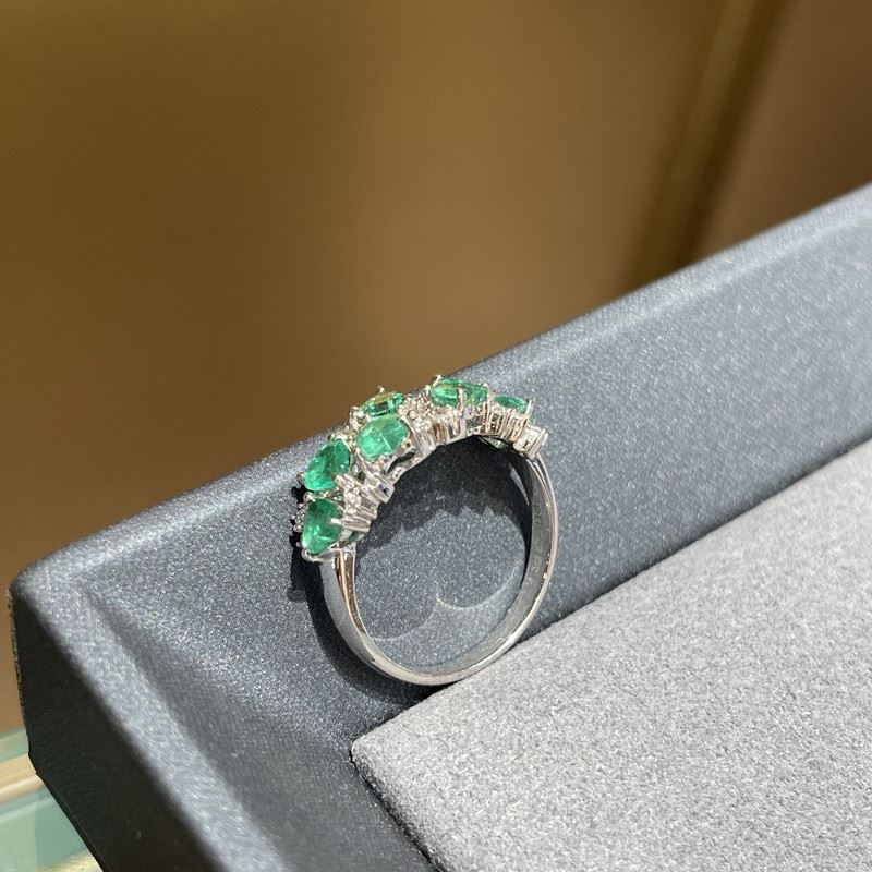 This 18K gold band ring is set with multiple emeralds and diamonds, showcasing vivid color contrast and refined layering. Its simple yet timeless design embodies elegance and sophistication.Ring size: 6, circumference: 52 mm, diameter: 16.6 mm, total weight: 3.78g.Note: GUILD certificate, comes with a jewelry, gemstone, and precious metal authentication certificate.