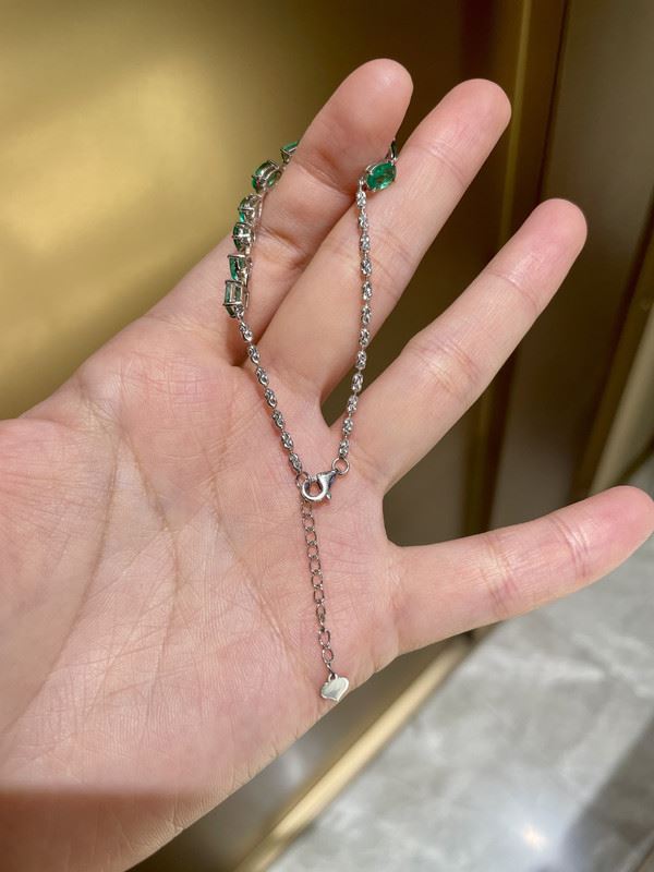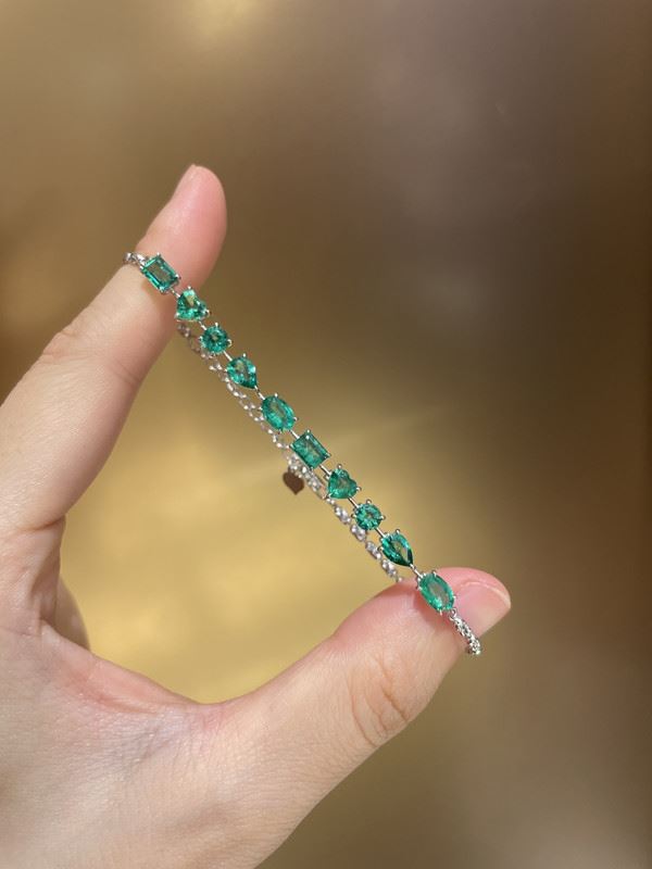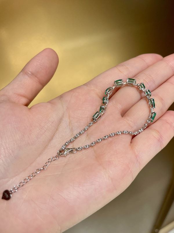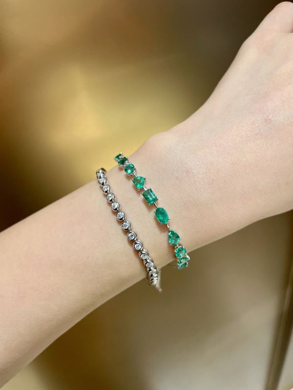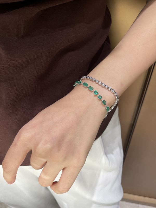 This 18K gold emerald bracelet is made up of a series of exquisite emerald gemstones, each carefully cut to ensure maximum display of color and brilliance. The bracelet features a clean, modern design that highlights the unique beauty of each stone. Whether for formal occasions or daily wear, this bracelet adds a touch of sophistication and elegance to the wearer.Total weight: 4.34g.Note: GUILD certificate, comes with a jewelry, gemstone, and precious metal authentication certificate.