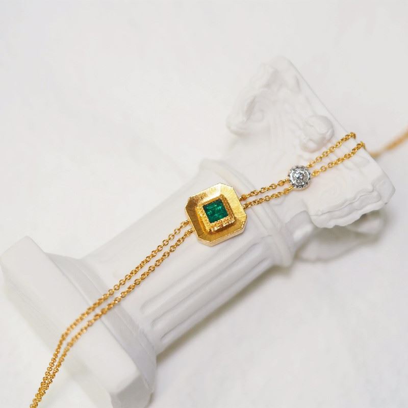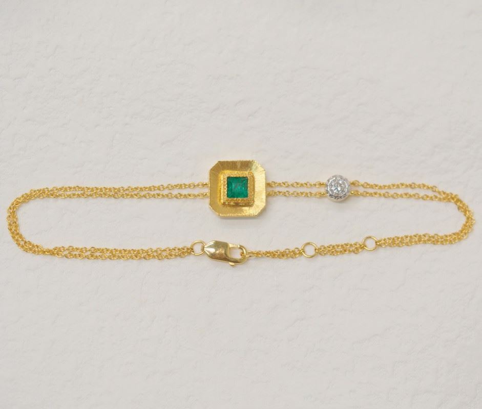 This 18K gold emerald bracelet features a delicate gold chain combined with a vibrant emerald gemstone, exuding noble elegance. The unique square emerald setting, accented with diamonds, perfectly showcases the craftsmanship and luxury of the piece. Whether for daily wear or special occasions, this bracelet enhances your overall style and highlights the wearer's refined taste and unique charm.Total weight: 3.94g.Note: GUILD certificate, comes with a jewelry, gemstone, and precious metal authentication certificate.