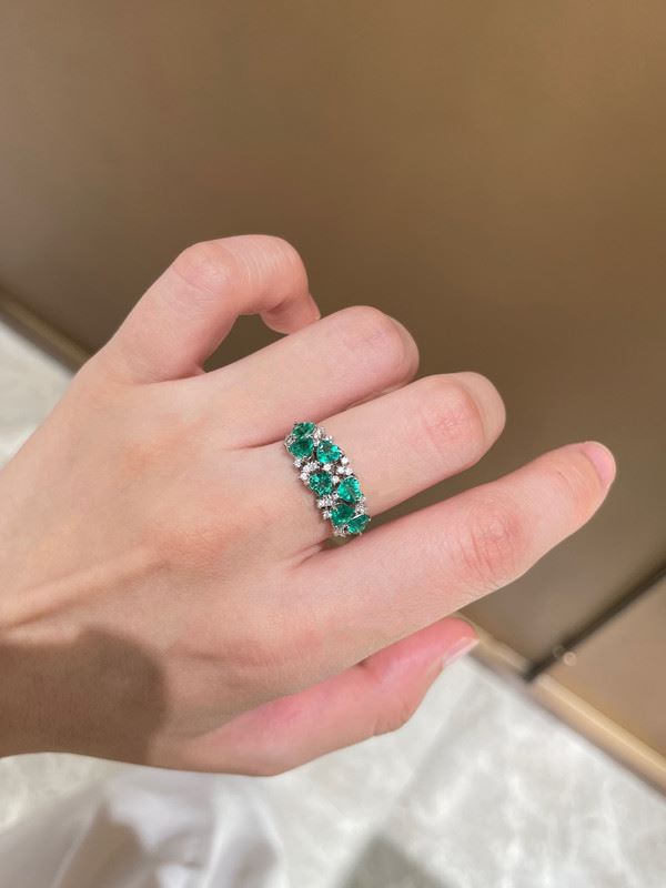 This 18K gold emerald ring is set with exquisite emerald gemstones and sparkling diamonds, blending elegance and luxury seamlessly. The intricate design exudes nobility and grace, making it perfect for formal occasions and a thoughtful gift for special moments.Ring size: 6, circumference: 52 mm, diameter: 16.6 mm, total weight: 3.78g.Note: GUILD certificate, comes with a jewelry, gemstone, and precious metal authentication certificate.